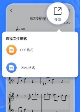 支持将文件导出为MusicXML、pdf等格式,可分享给好友,或分享至懂音律App等。