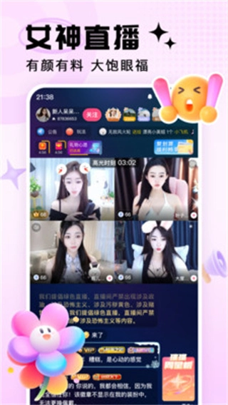 【花样直播】这里有可爱萌妹、在读校花、次元萝莉,还有肌肉型男!主播们风格百变,撒娇卖萌、唱歌热舞样样精通,简直秀色可餐。更有火辣舞女郎陪你尽情狂欢,当下,马上开启互动吧!