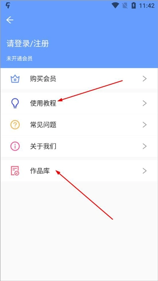 3、点击首页左上角,即可查看个人中心。在该页面,您能够找到软件使用教程以及个人作品库。