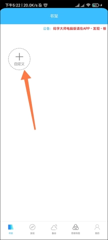 1. 开启码字大师App,于书架页面轻点自定义加号图标。