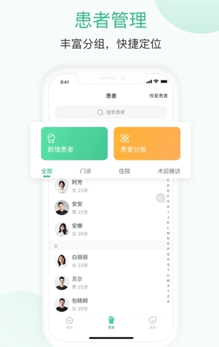 1. 医生能够在线对患者进行管理。该软件具备极为丰富的分组,助力医生快速定位。此外,还增添了患者信息管理功能。