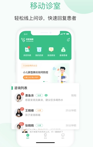 1. 移动诊室开启便捷线上问诊模式,迅速回应患者咨询。