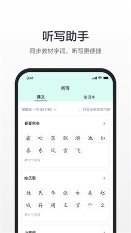 3、在软件中可以实现单词听写,一个人也可以学好汉字。