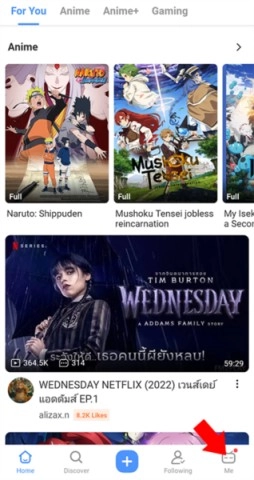 1、在哔哩哔哩泰国版正常开放后,点击右下角的“me”选项。