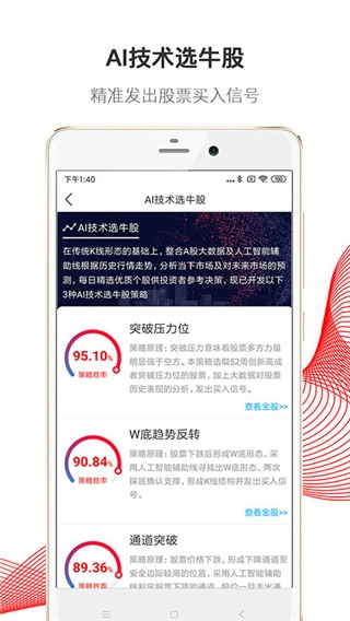 3、智能策略专业选股,抓住交易机会,贴心短信提醒调整仓位。
