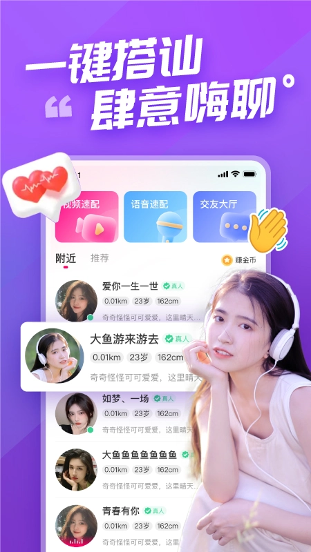 语甜是一款十分优质的社交交友平台,你可以通过文字、语音、视频等多种方式与同城附近异性互动,24小时随时随地约会交友聊天,遇见对的她,从此告别单身,感兴趣的朋友可以来