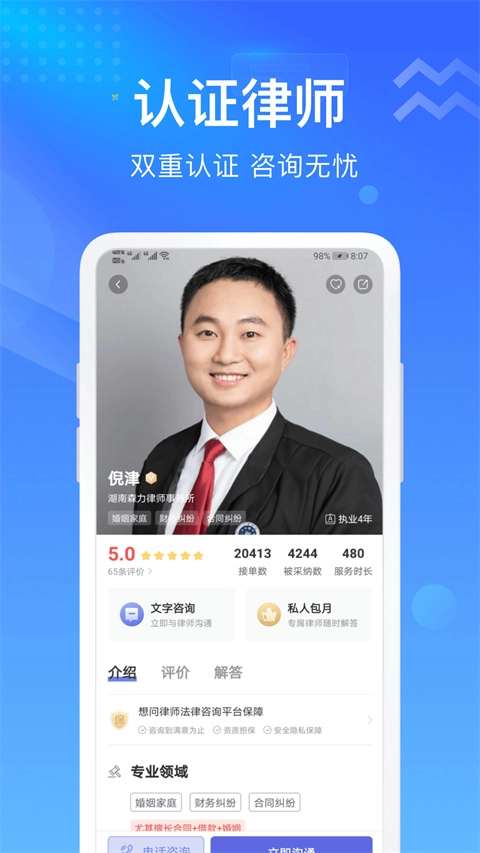 4、想要免费向律师提出各类法律问题,并能与律师开展不受时间限制的一对一沟通。