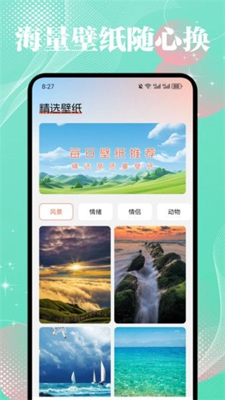 2. 精心挑选高清壁纸,风格多样,包含简约、动漫、风景等,能够根据设备进行适配,每天都会更新并推送全新壁纸。