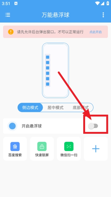 该软件具备这样的功能:点击悬浮球后,悬浮面板会随即弹出。