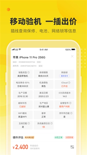 机大侠,一款专业且好用的验机软件。它能迅速连接验机设备,精准查询手机保修状况、电池健康程度、网络锁等诸多信息。机大侠还支持拍照验机,并给出精准估价,助力用户把旧手机卖个满意价钱。快来机大侠,体验更多精彩功能!