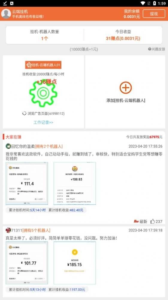 云端挂机赚钱是发布的挂机赚钱软件,绿色安全。