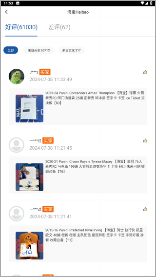 在完成交易之后,用户能够在此发布个人对于此次卡片交易的评价,给其他用户做参考