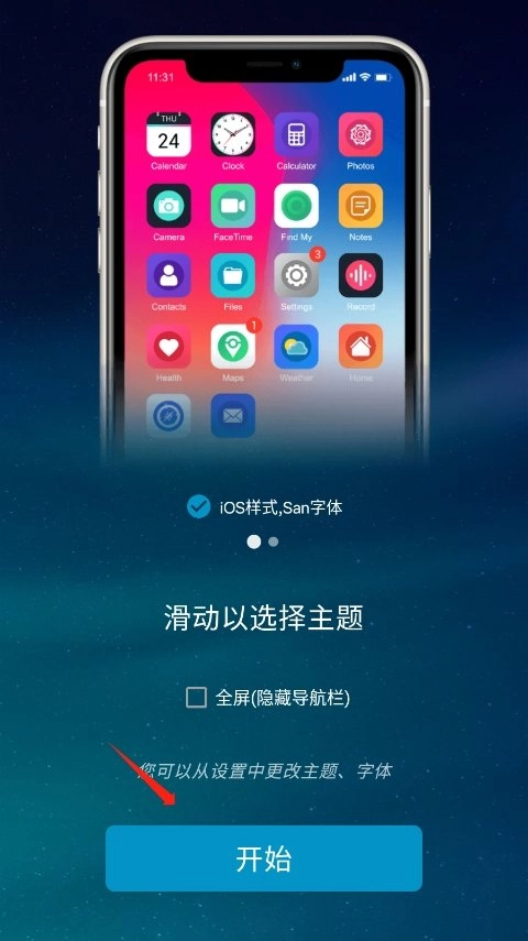 1、在本站安装此应用,打开后进入界面,通过滑动选择壁纸,然后点击“开始”。