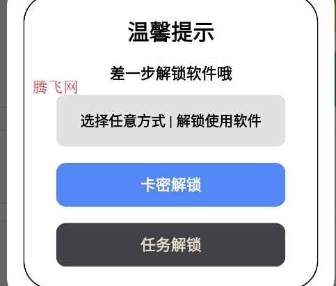 2.解锁功能的方式有两种,任务解锁或者卡密解锁