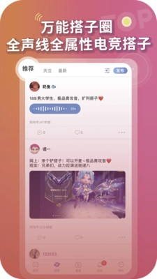1、第一步,在软件里依据个人喜好寻觅游戏搭子。