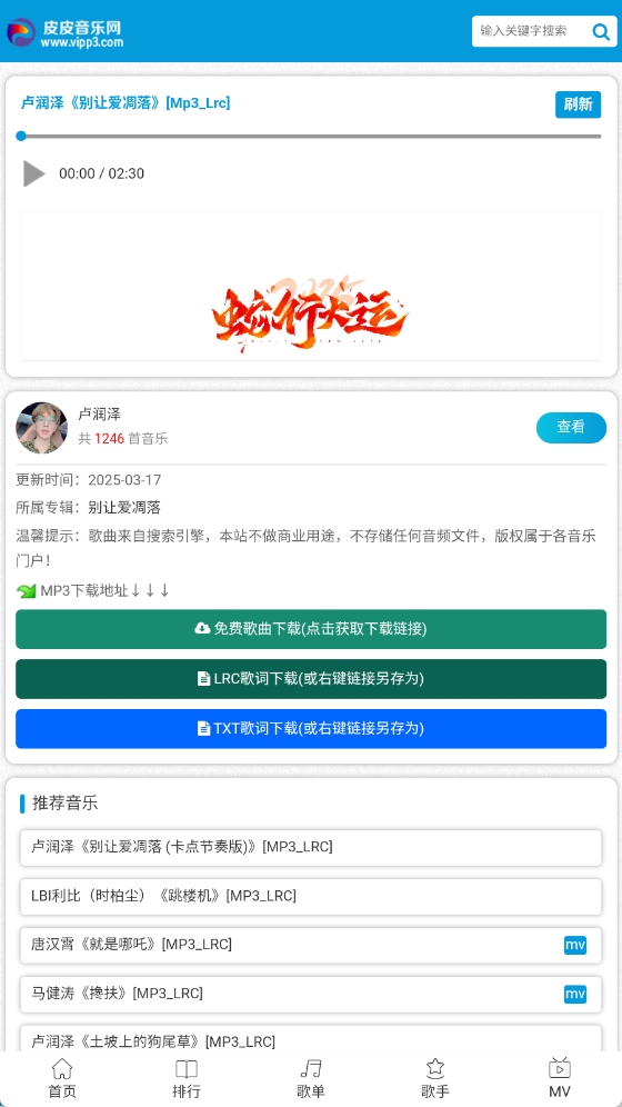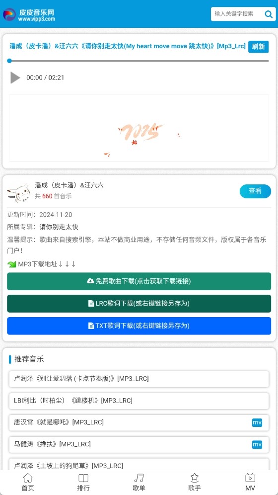 皮皮音乐网,堪称一座音乐资源的宝库,海量音乐汇聚于此,网罗全网歌曲作品。踏入这动感四溢的节奏音乐天地,即可开启挑战之旅。平台为用户免费提供各类音乐节奏,在这里,你定能找到心仪的音乐作品,畅享卓越的听歌体验。它还会依据用户喜好,精准推荐相关音乐,定制个性化电台歌单并随即播放。音乐资源轻松解锁,任你探索。你能寻觅到自己钟爱的歌曲,按不同播放模式开启音乐盛宴,免费畅听喜爱的曲目。无论你是何种类型的音乐爱好者,皮皮音乐网都非常适合安装使用,尽情享受听歌的乐趣。