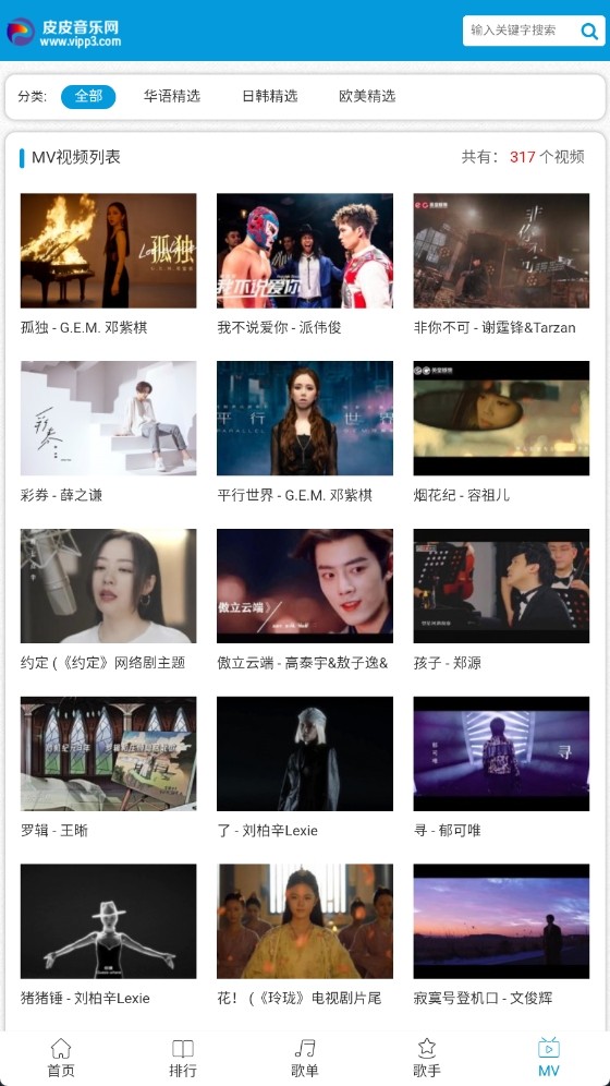2. 轻点底部的栏目分类,就能切换至不同类型的MV。