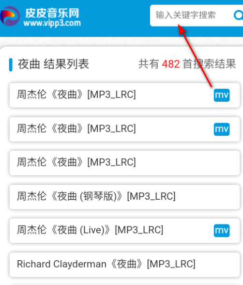 2、在此处输入关键词,便能找到你想找的歌曲。