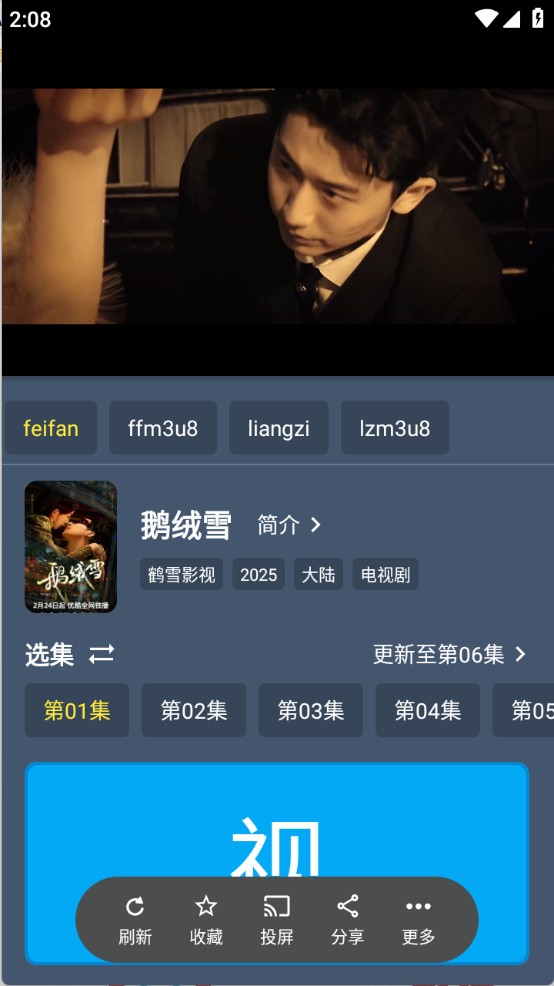 4、点开喜欢的影视资源以后,选择集数以及播放源就可以了。