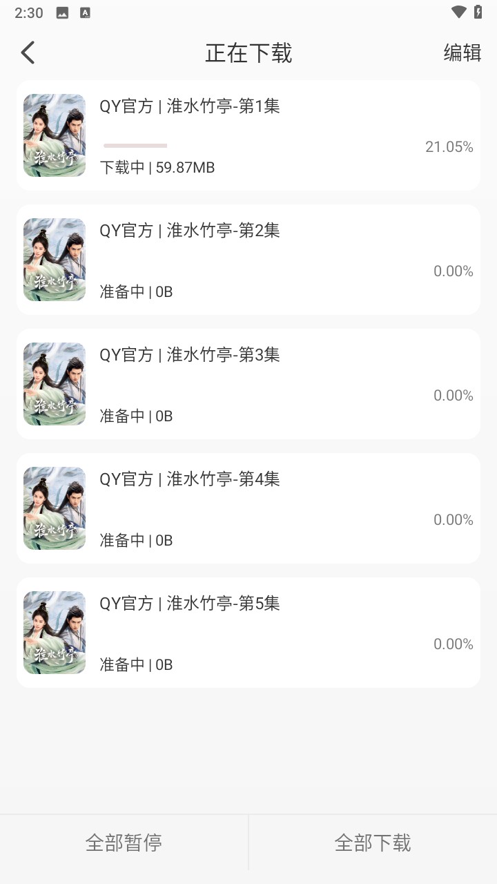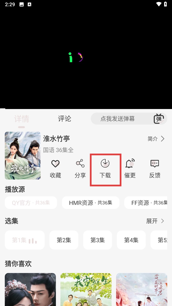 1、打开软件后,随意播放一部电视剧,此处以“淮水竹亭”为例,于播放界面找寻“”按钮。