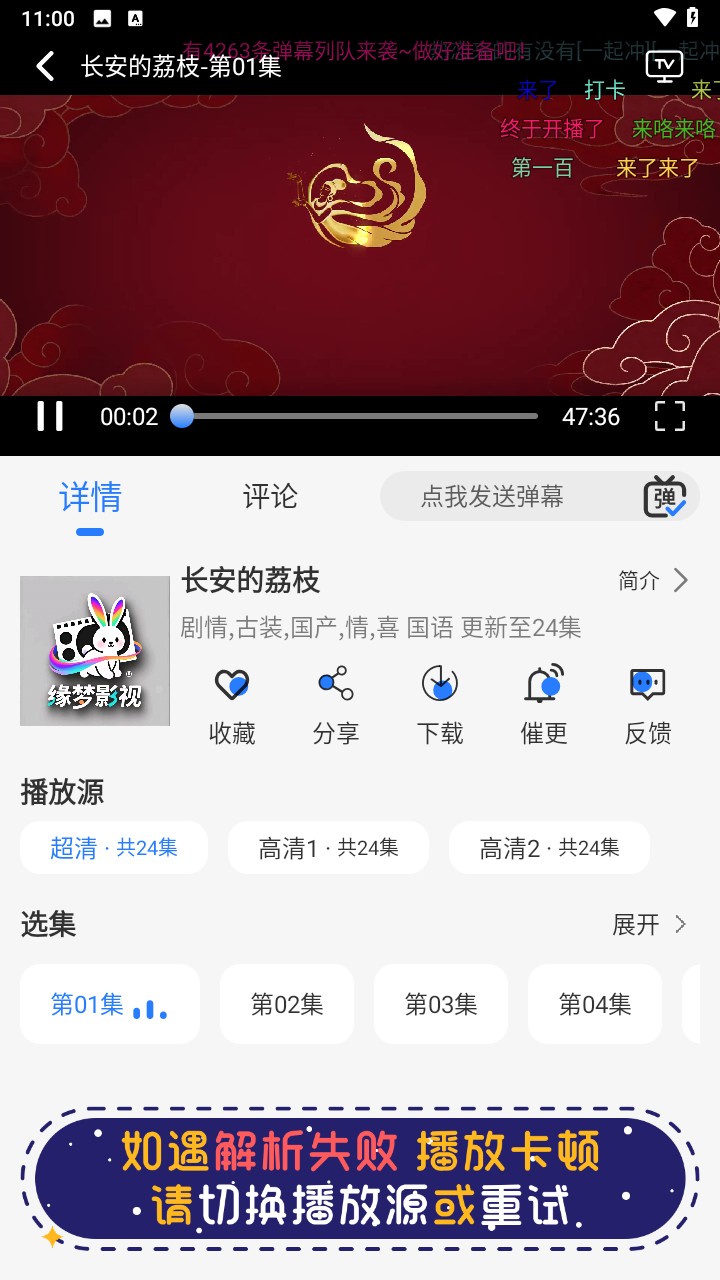 2、随后随意播放一部剧集内容,在此小编以“长安的荔枝”为例。