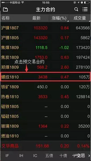 启动软件后,系统默认跳转至主力合约界面,用户能够依据自身需求挑选合约开展交易。
