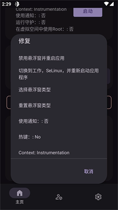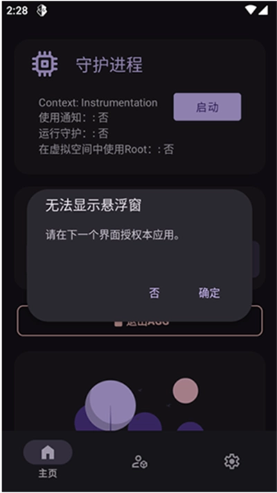 2、需要获取相应的权限才能显示悬浮窗,点启动即可开启。