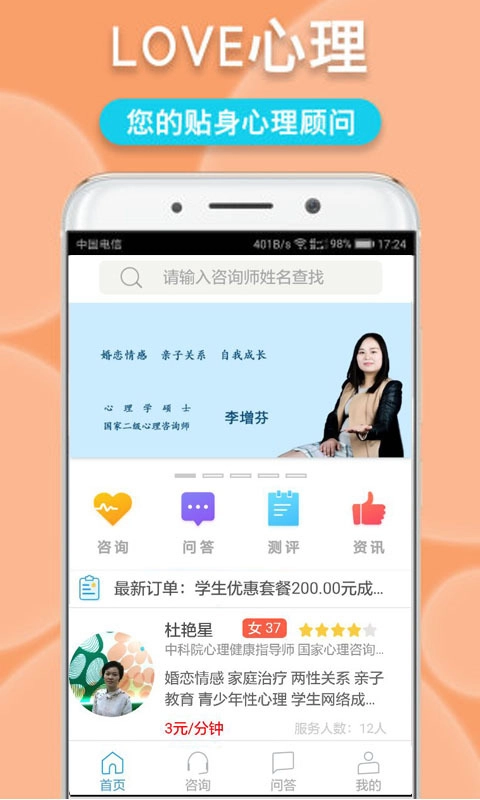 LOVE心理是一款聚焦心理健康领域的软件,其目的在于为用户供给全方位的心理健康服务。借助这款软件,用户能够知晓心理健康知识、开展心理测评,还能与专业心理咨询师展开交流等。