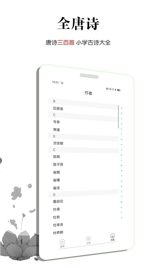 1. 诗人介绍:该软件涵盖各时期知名诗人的介绍,内容涉及他们的生平经历与诗歌风格,为用户打造了一个全方位的唐诗学习资源平台。