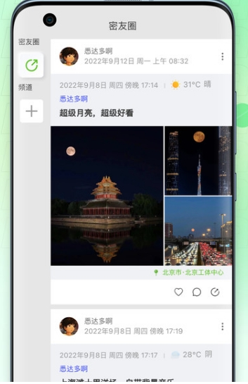 主要用于密友之间分享日常生活,也能够设置为仅自己或特定某位好友可见。