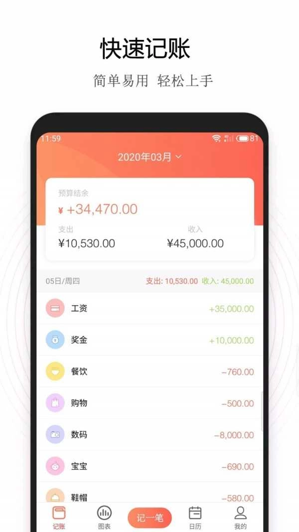 小美记账,是一款操作简便、能快速记账的App。使用小美记账,短短几秒,就能掌握记账新技能,助你养成记账习惯,从此告别糊涂账。它支持全面自定义背景,设计清爽,还能即时反馈消费额度,让你的消费控制更加及时。