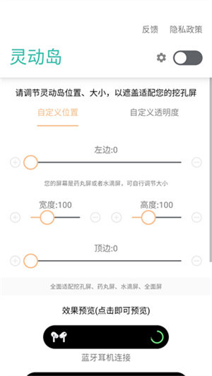 6、在应用首页,你能够对灵动岛的位置与大小进行自定义设置,使其能够完美遮盖并适配你的机型。