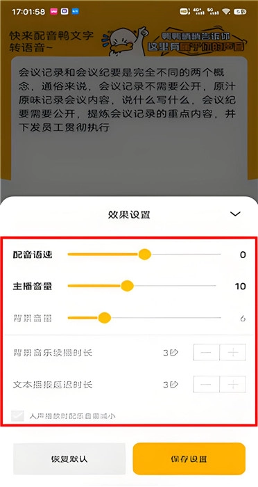 4、用户可对语音的语速、音量等各类效果进行调整,使语音效果达到预期。