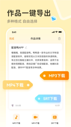 1. 生成的全部音频,都能一键导出为MP3格式,无论是手机还是U盘,都支持离线播放,分享给他人十分便捷。