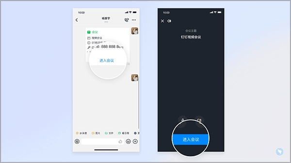 3、方式三:通过会议卡片加入会议:打开移动端>>在聊天窗口选中对方发送的会议卡片>>点击进入会议。