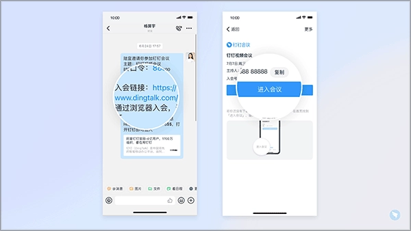 注:若在其他应用平台点击入会链接选择进入会议,系统会自动跳转至钉钉移动端App内,并加入会议。