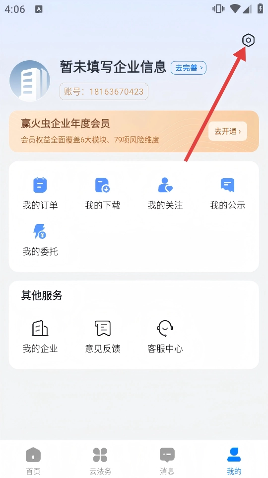 2. 在个人页面,轻点页面右上角的设置图标,即可进入设置页面。