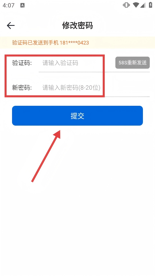 4、于修改密码页面,填写相关信息后点击【提交】,即可修改登录密码。