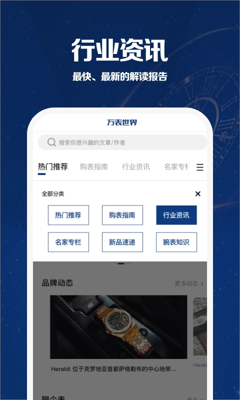 1、每日为用户推荐多种类型的手表资讯;