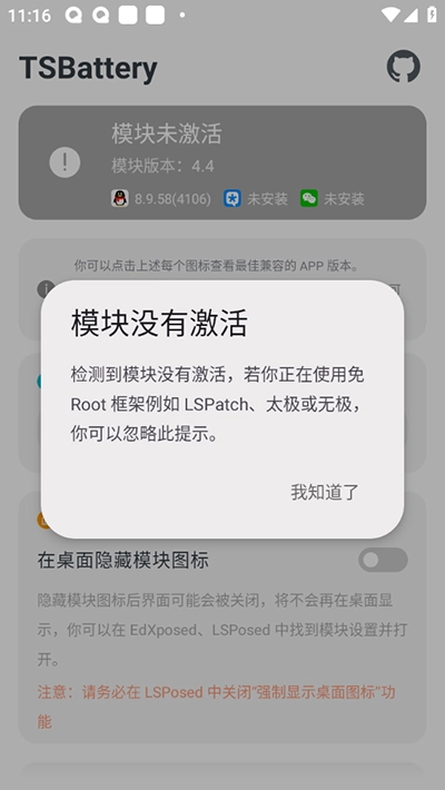 1、第一步要激活tsbattery模块,要是你正使用免root框架,像lspatch、太极或者无极,就不用激活。