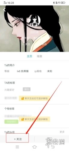 3、紧接着,在用户页面的左下角位置,寻找到“关注”按钮并点击。