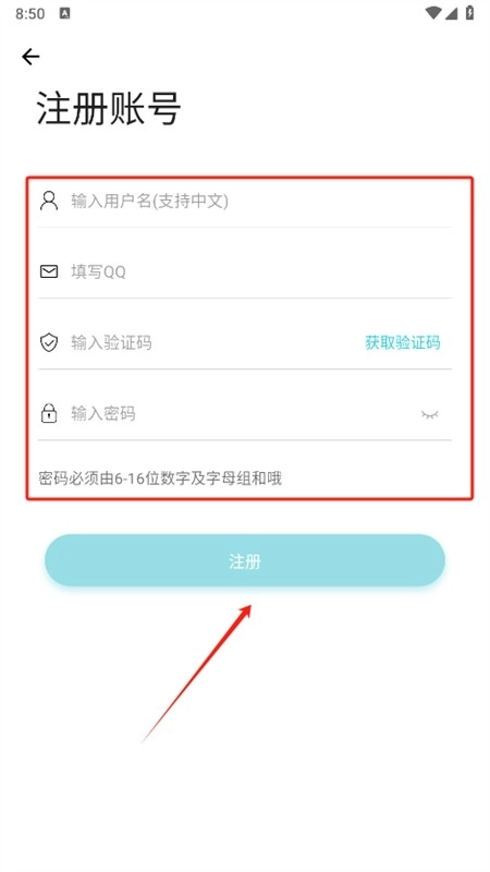 4、在相应位置输入用户名、验证码等信息,妥善设置密码后,点击页面下方的“注册”按钮即可完成操作。