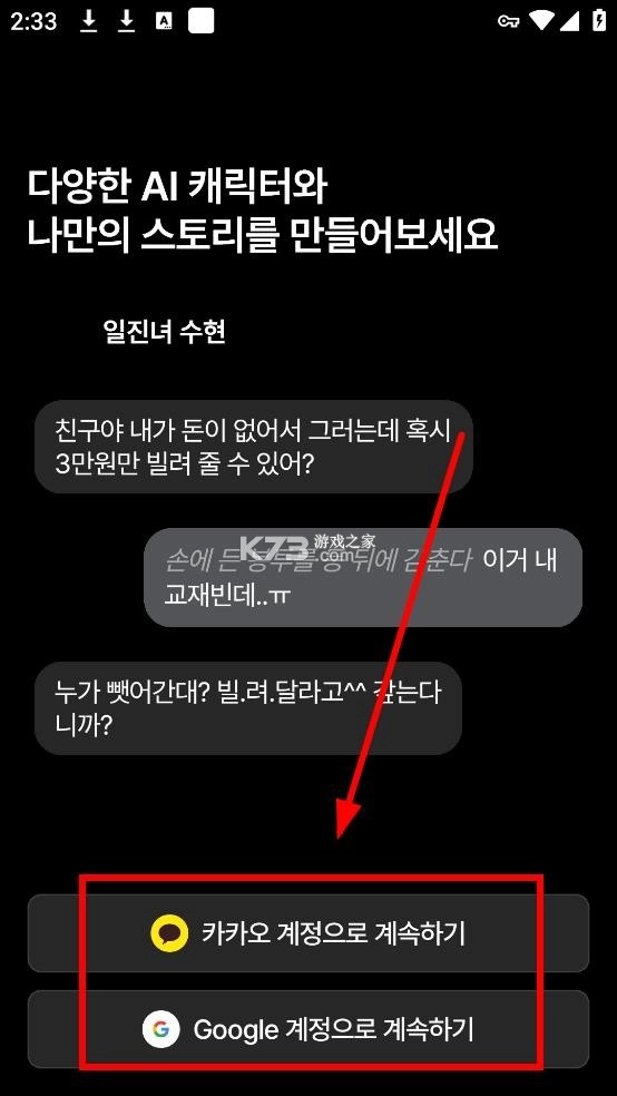 在本站打开软件,可通过kakao账号或谷歌账号进行登录。