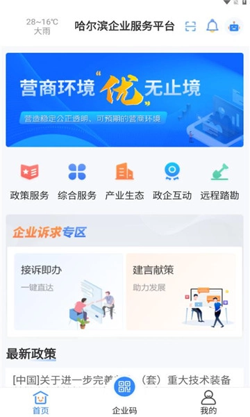 哈尔滨企业服务整合了惠企政策服务、企业综合服务、产业生态服务以及政企互动服务等多个板块,旨在达成企业端政策服务的精准触达与便捷查询,同时实现服务资源的智能匹配、产业上下游供需的高效对接,以及企业诉求的迅速反馈,以此为企业开拓全新的服务层面,助力企业实现高质量发展。