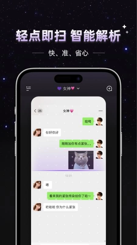 话聆AI软件主打助力用户开展高情商聊天互动,不仅支持轻松上手操作,还能对各类场景对话展开详细解析,用户上传聊天截图后可获取精准分析与回复建议,高效覆盖多场景沟通需求,帮助用户拓展对话思路;此外,用户还能创建专属个人档案,定制个性化沟通攻略,实现便捷高效的对话回复。