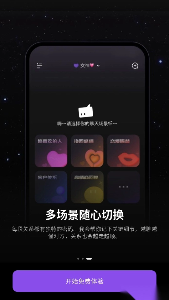 软件涵盖了丰富多样的沟通场景,用户能够根据自身需求灵活切换,并且可以针对不同场景给出富有灵感的回复。