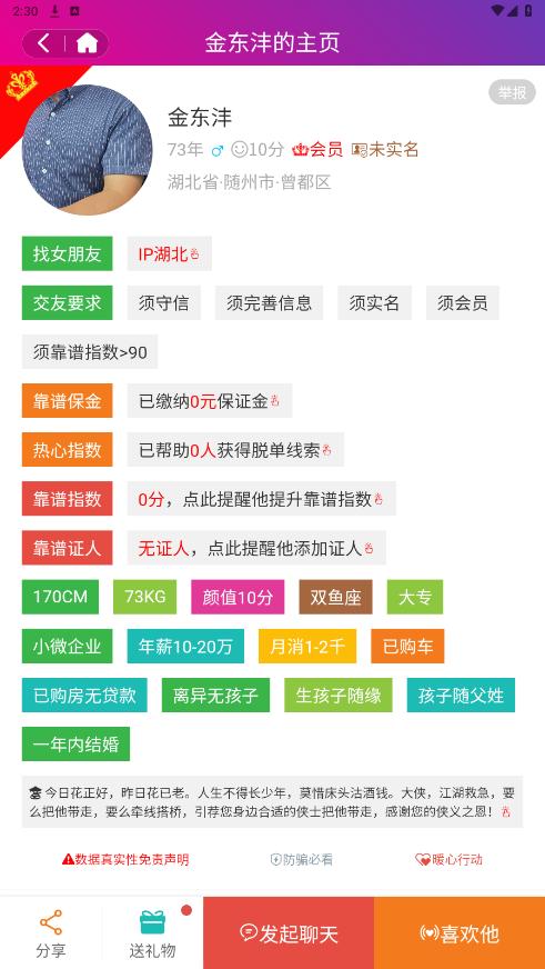 丛丛小程序被多位用户推荐为靠谱的脱单交友平台。用户在使用丛丛小程序的过程中,成功找到了伴侣,并且对平台的可靠性和安全性给予了正面评价。该平台通过多重审核机制,如身份、工作及学校的核实,以及对于不法行为的严厉处理,如警告、封号甚至报警,来确保平台上的用户质量。此外,丛丛小程序还提供了实名认证、靠谱证人、热心指数、靠谱保金等措施,进一步减少了骗子的存在,为用户提供了一个相对安全的交友环境。用户反馈显示,丛丛小程序在北京、深圳、广州、上海、杭州、成都等大城市中拥有较多的用户,并且成功帮助了不少人脱单。