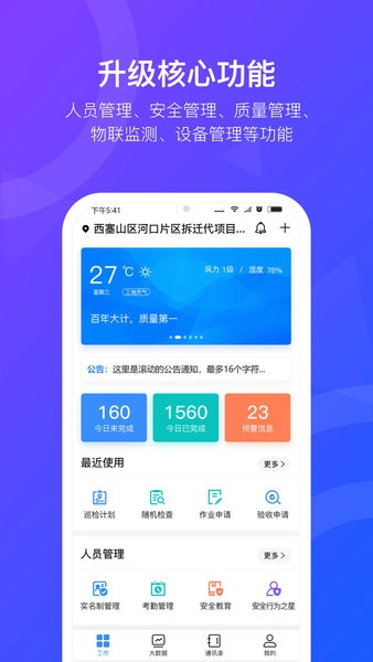 智慧工匠pro手机版是一款面向建筑行业的智能化办公服务云平台,可助力用户便捷管理员工,对工地人员进行实时监控,便于随时掌握工程进度及相关数据,实现高效便捷的智慧管理服务。