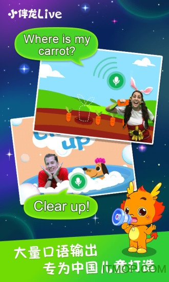 小伴龙Live——美国幼儿园直播课,是儿童早教品牌“小伴龙”推出的课程,它融合了全新的教研成果,运用虚拟场景等先进技术,专门为3到8岁的孩子构建一个能够拓展国际视野、让孩子在轻松氛围中快乐学习、同班同学之间可以相互激励的美式英语课堂。