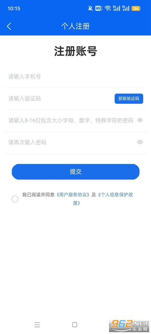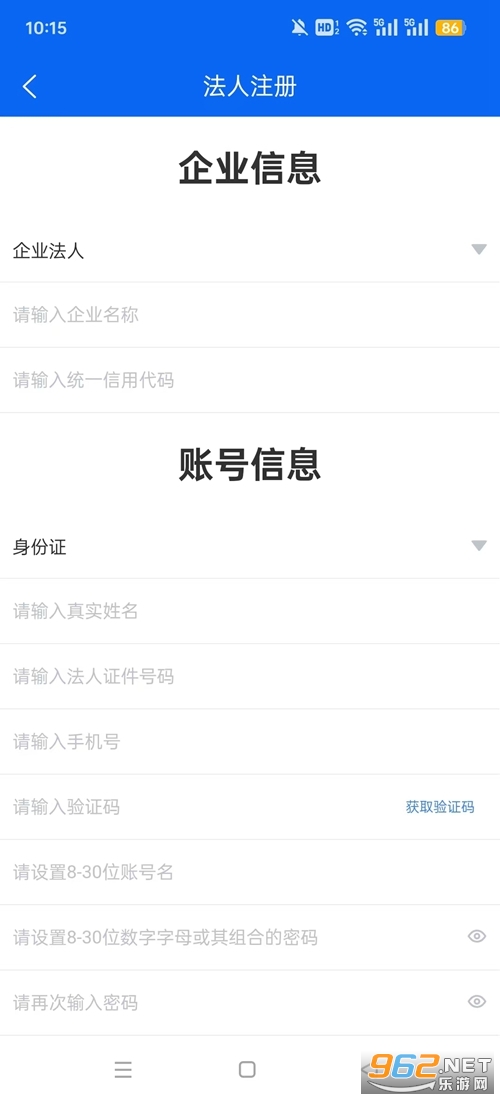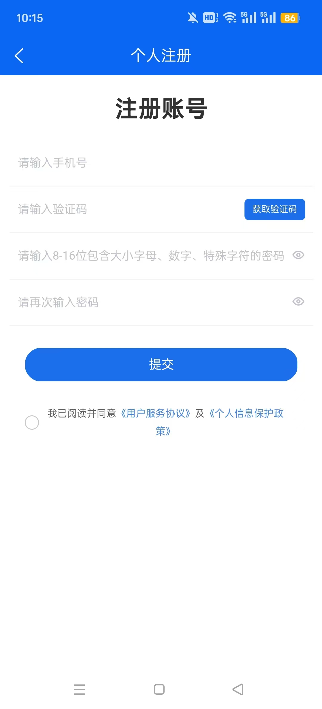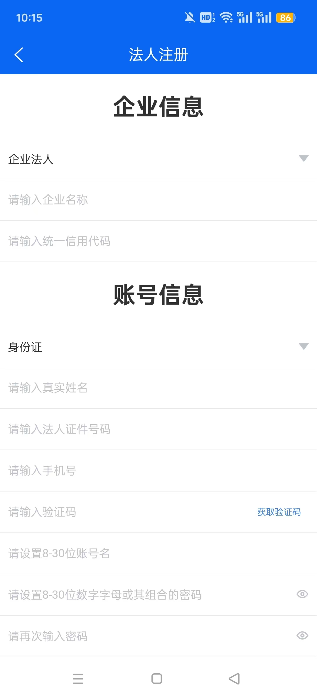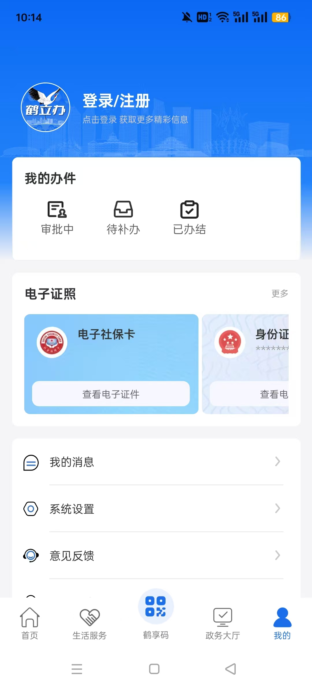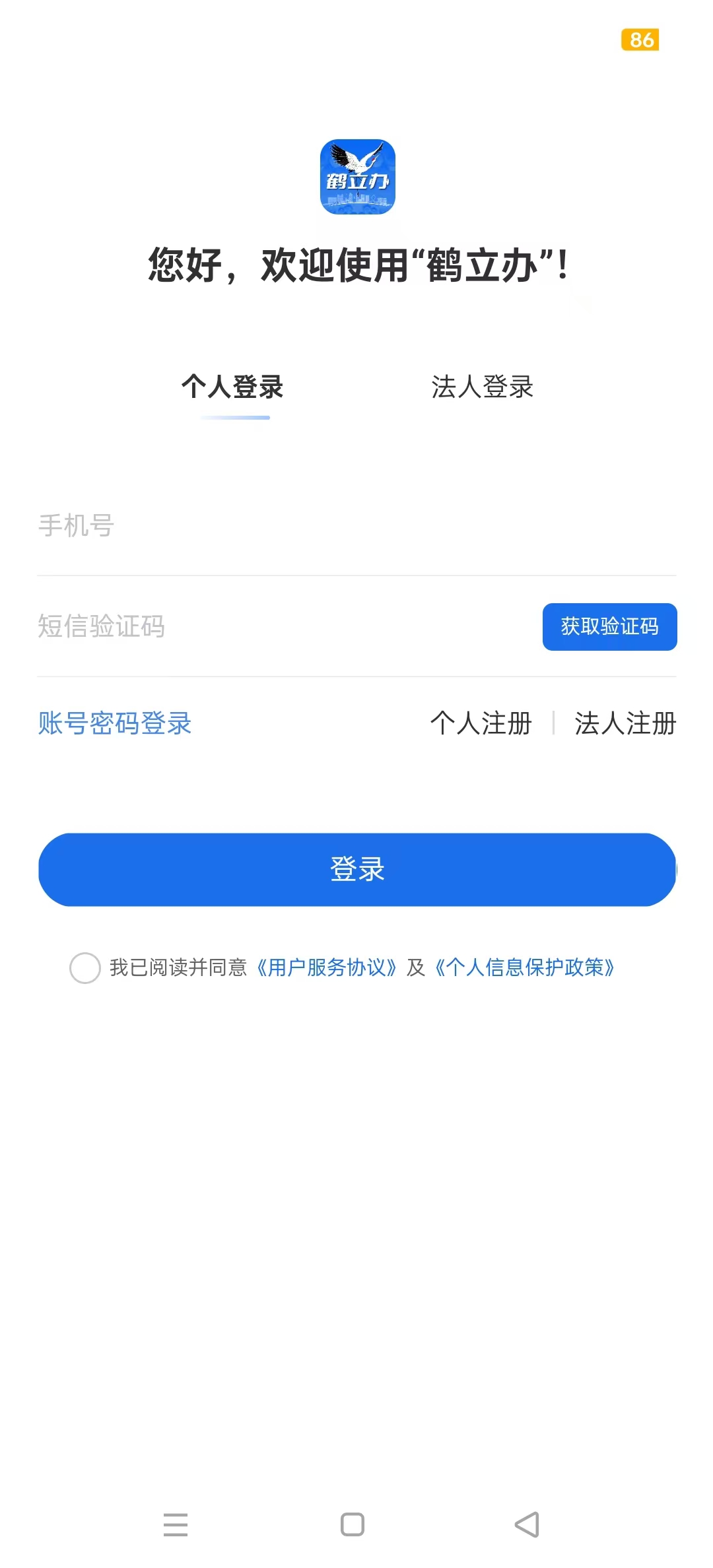 打开鹤壁市政务服务移动端应用“鹤立办”,第一步需要完成注册操作。该应用提供个人注册和法人注册两个选项,二者的注册条件有所不同。